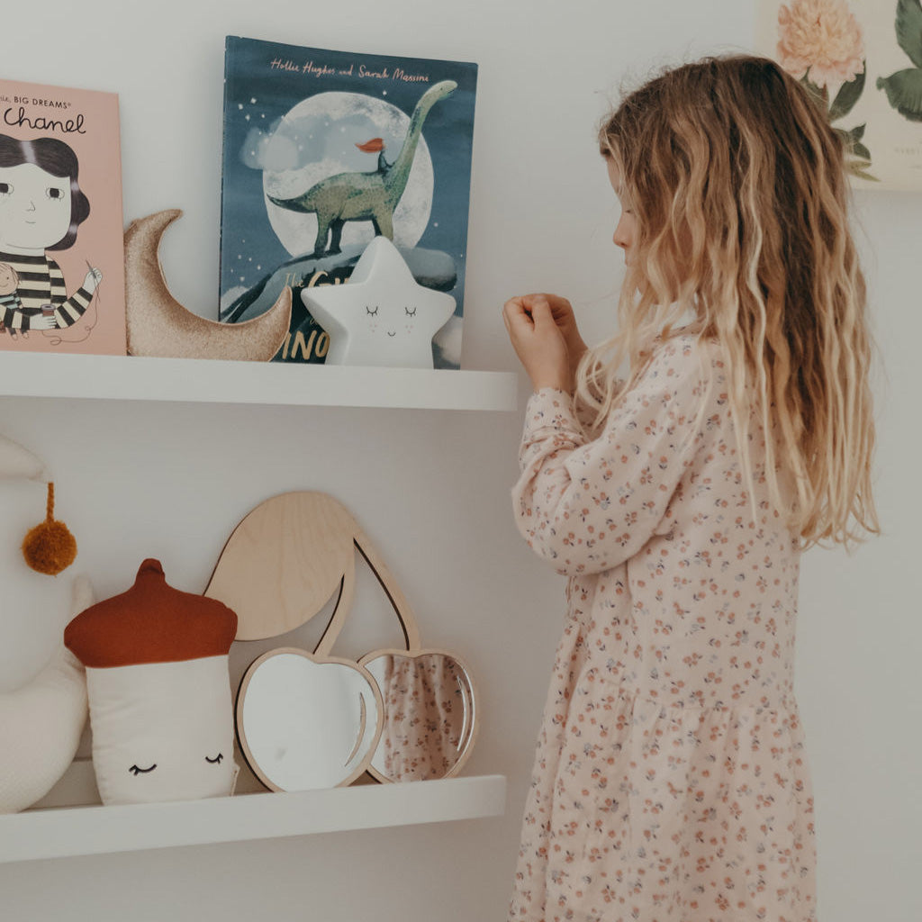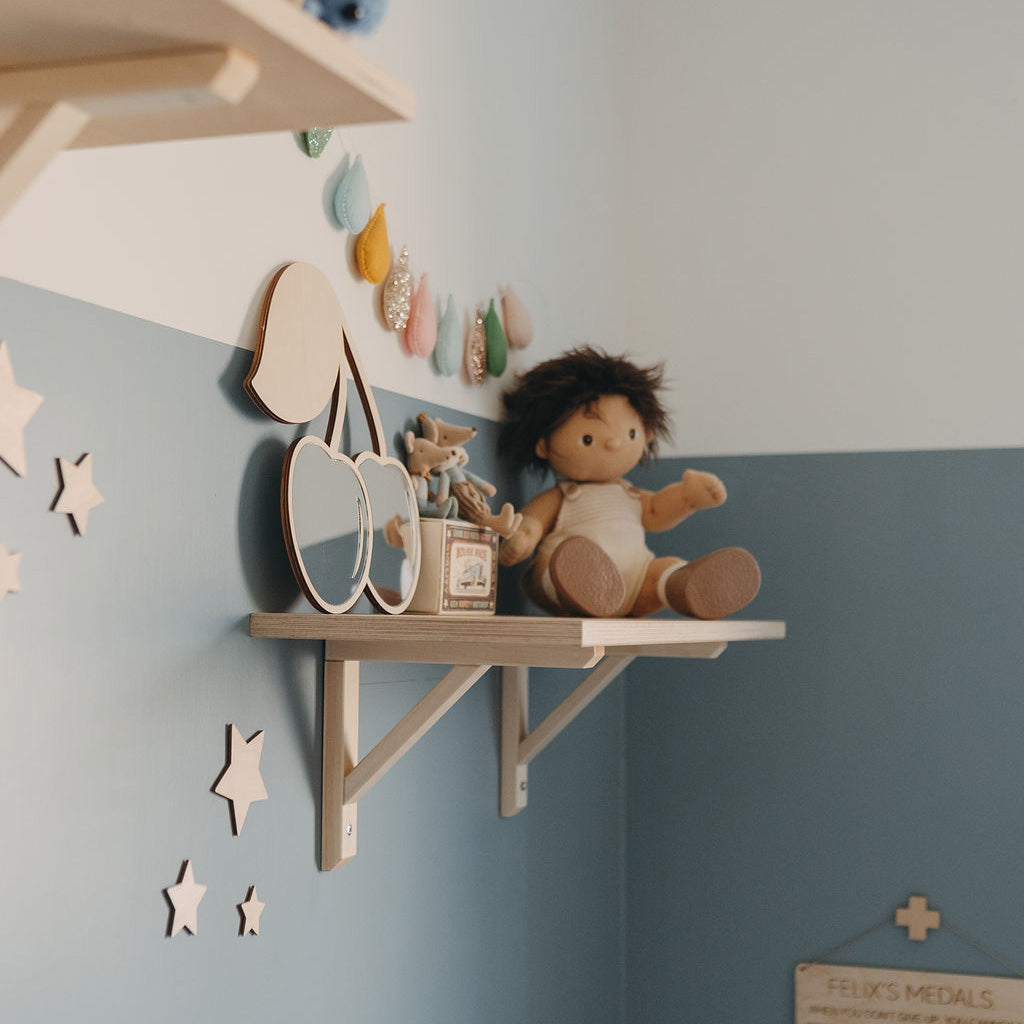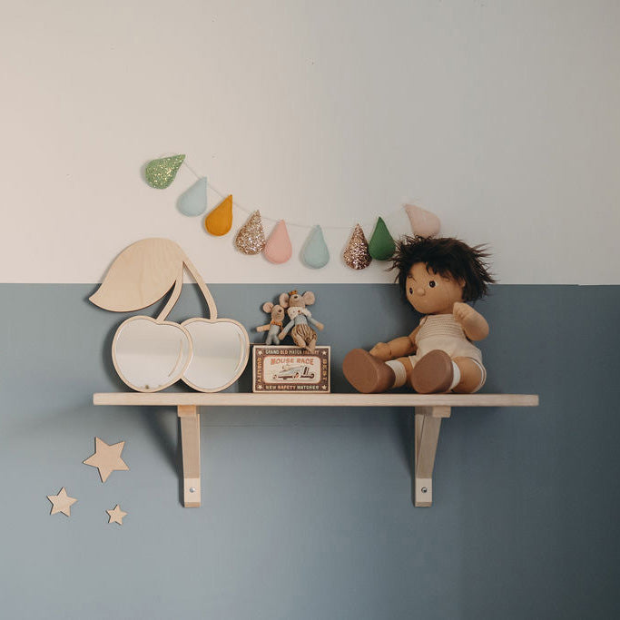 Elevate your child's space with our playful cherry mirror! Adding a burst of fun it's a delightful addition to any bedroom, inspiring imaginative adventures with its vibrant design. It's shatterproof and crafted from mirrored acrylic inset into a plywood frame.