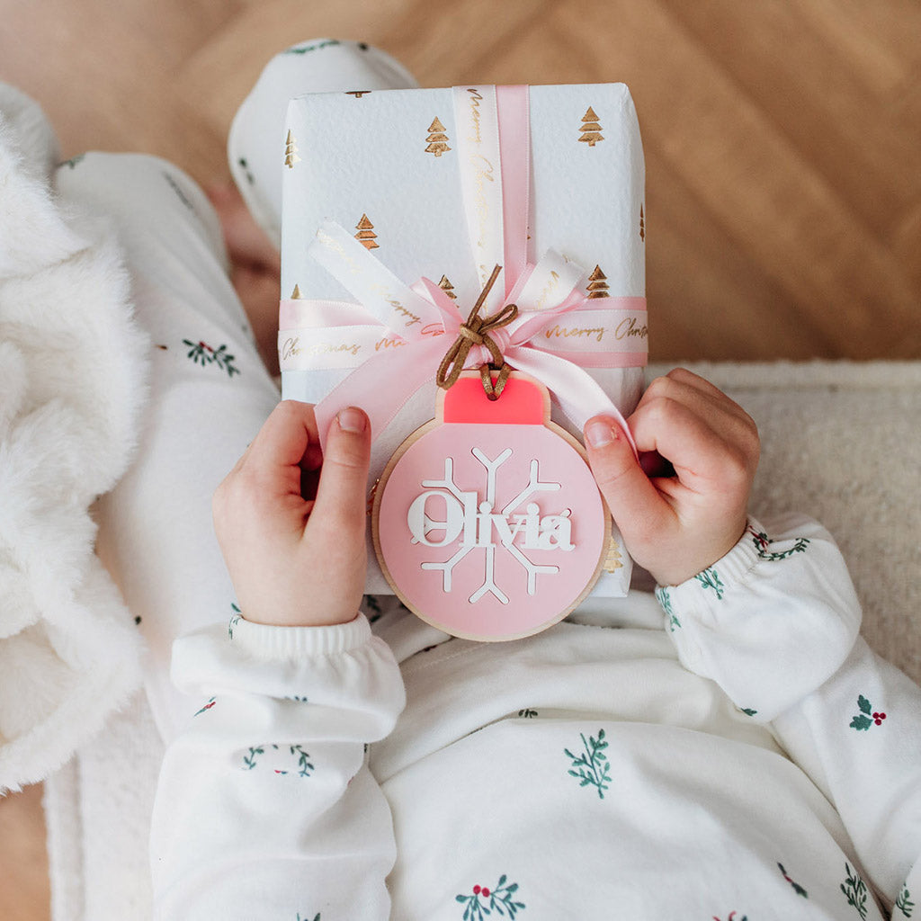 Whether you're marking a first Christmas with a new baby, celebrating as a family, or adding to your collection, these stylish and festive baubles will beautifully adorn your tree this year and for many to come. Crafted from birch plywood and coloured acrylic, each comes with a gold, silver or toffee faux suede cord for a charming finish.