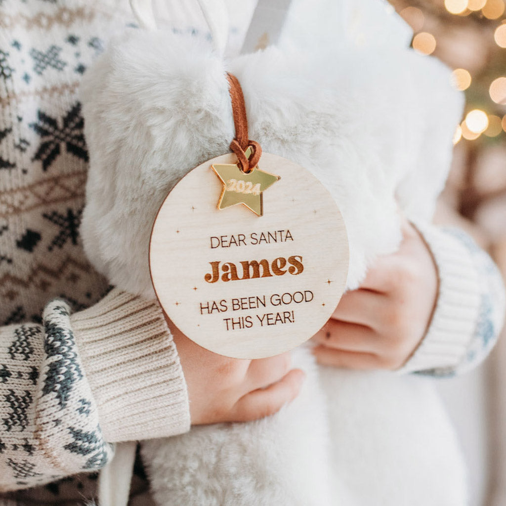 Dear Santa Personalised Christmas Bauble | Father Christmas Ornament | Nice List Christmas Gift | Wooden Christmas Gift