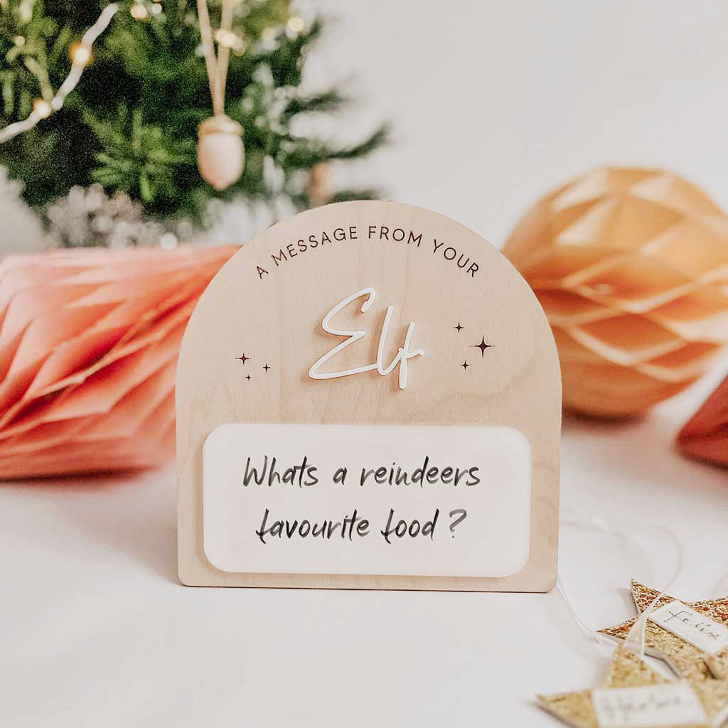 Give your chatty Christmas Elf a voice with our 'Magical Message Board' Board. Elevate the holiday magic effortlessly by writing Elf notes with a chalk pen or dry erase pen. Wipe it clean for nightly reuse, and watch the kids love it!