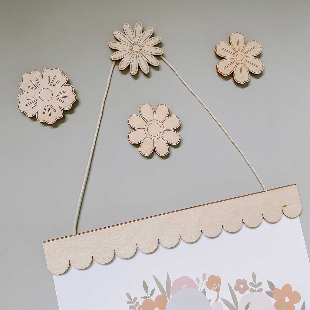 The OG Flower Wall Hook | Self Adhesive Wooden Hanger | Poster Hanger For Nursery | Wooden Hook for Wall