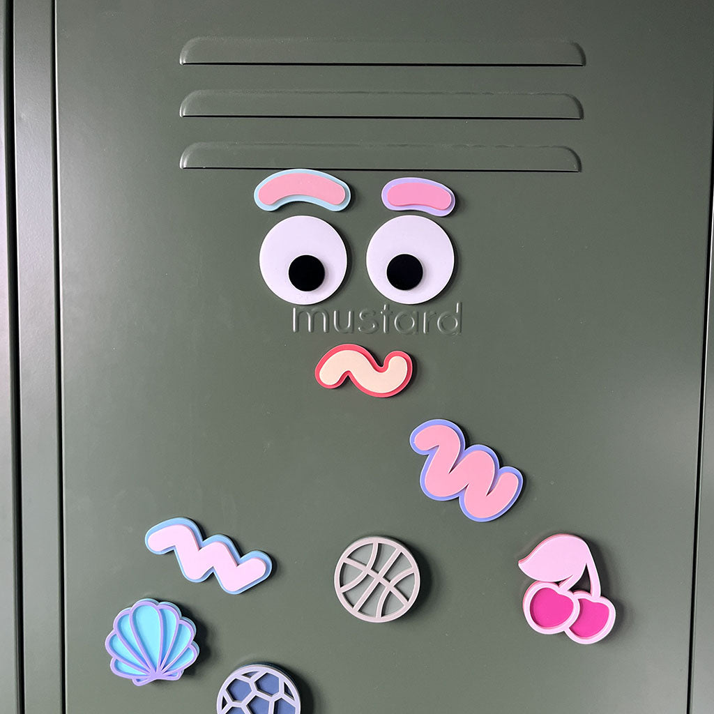 Our Googly Eye Locker Magnetics are pretty, practical and the perfect match for any locker! Each googly has one strong magnet and a felt pad so they wont scratch your beloved locker. They come as a set of 2 eyes.