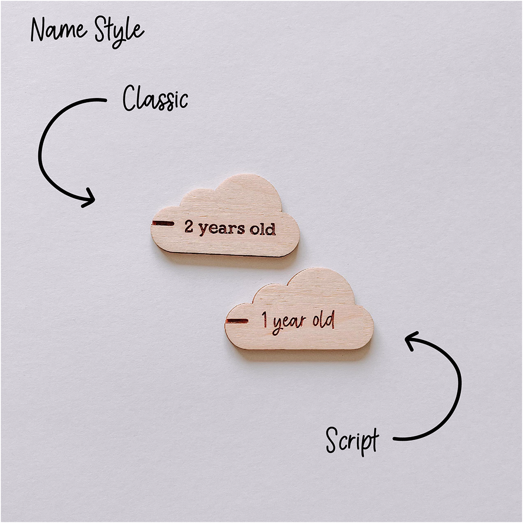 Personalised Wooden Growth Chart Markers | Custom Name Milestone Tags for Height Charts | Age Markers | Modern | Matching Set Cloud