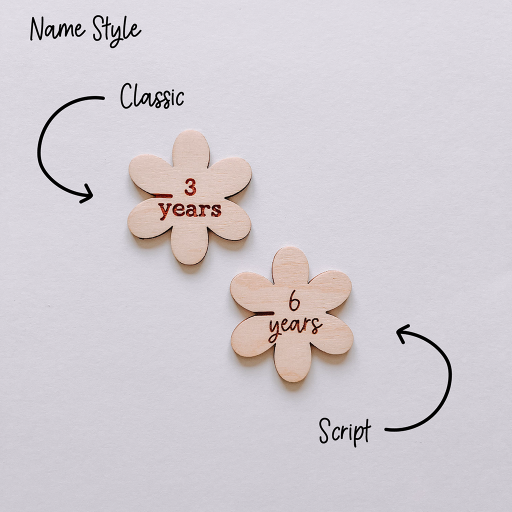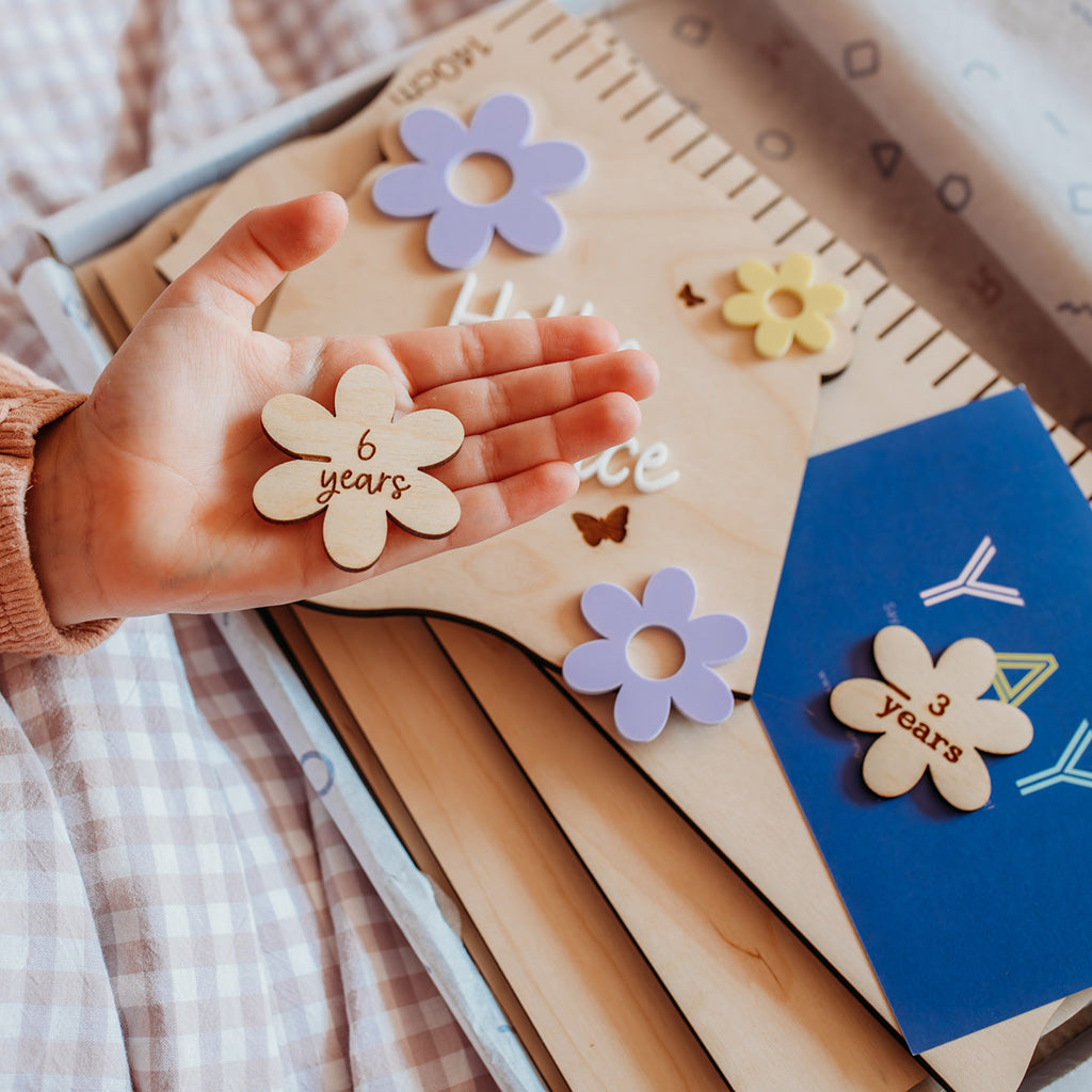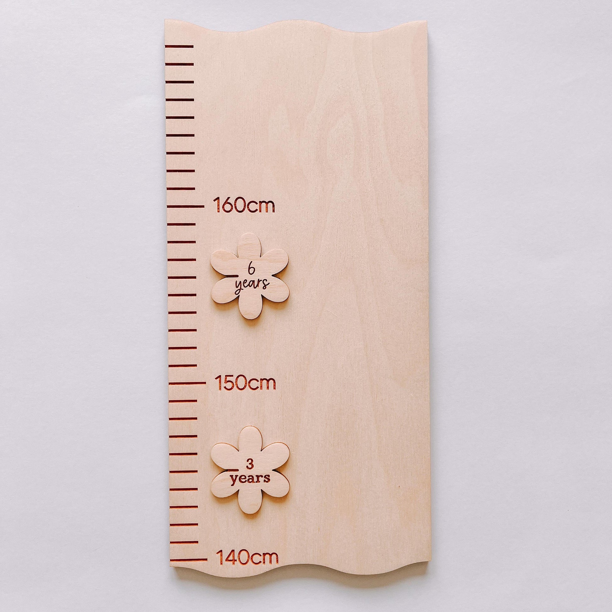 Personalised Wooden Growth Chart Markers | Custom Name Milestone Tags for Height Charts | Age Markers | Modern | Matching Set Flower