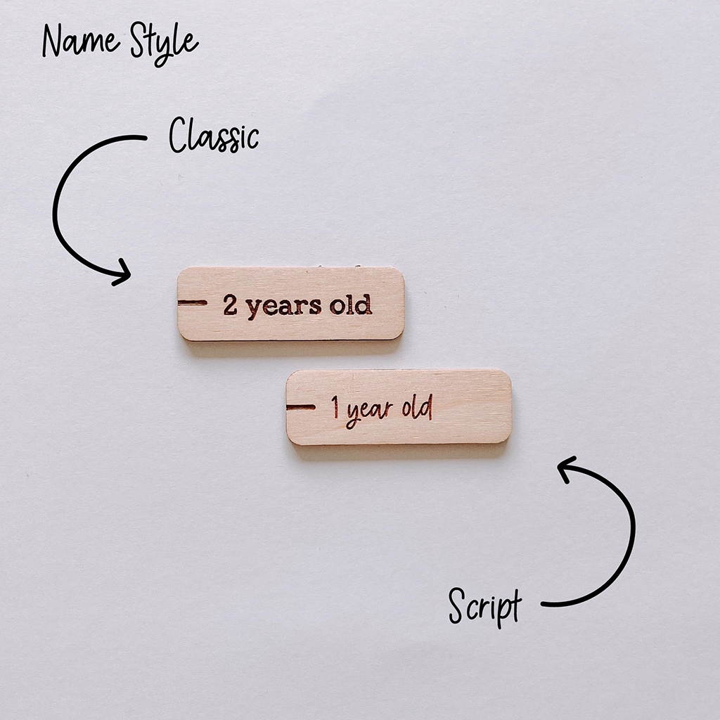 Personalised Wooden Growth Chart Markers | Custom Name Milestone Tags for Height Charts | Age Markers | Modern | Matching Set Rectangle