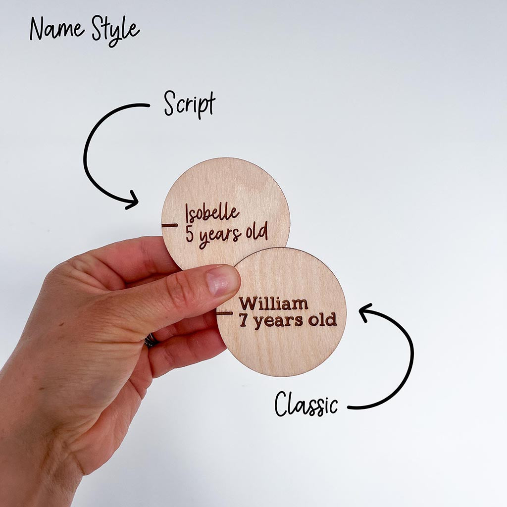 Personalised Wooden Growth Chart Markers | Custom Name Milestone Tags for Height Charts | Age Markers | Modern | Matching Set Round