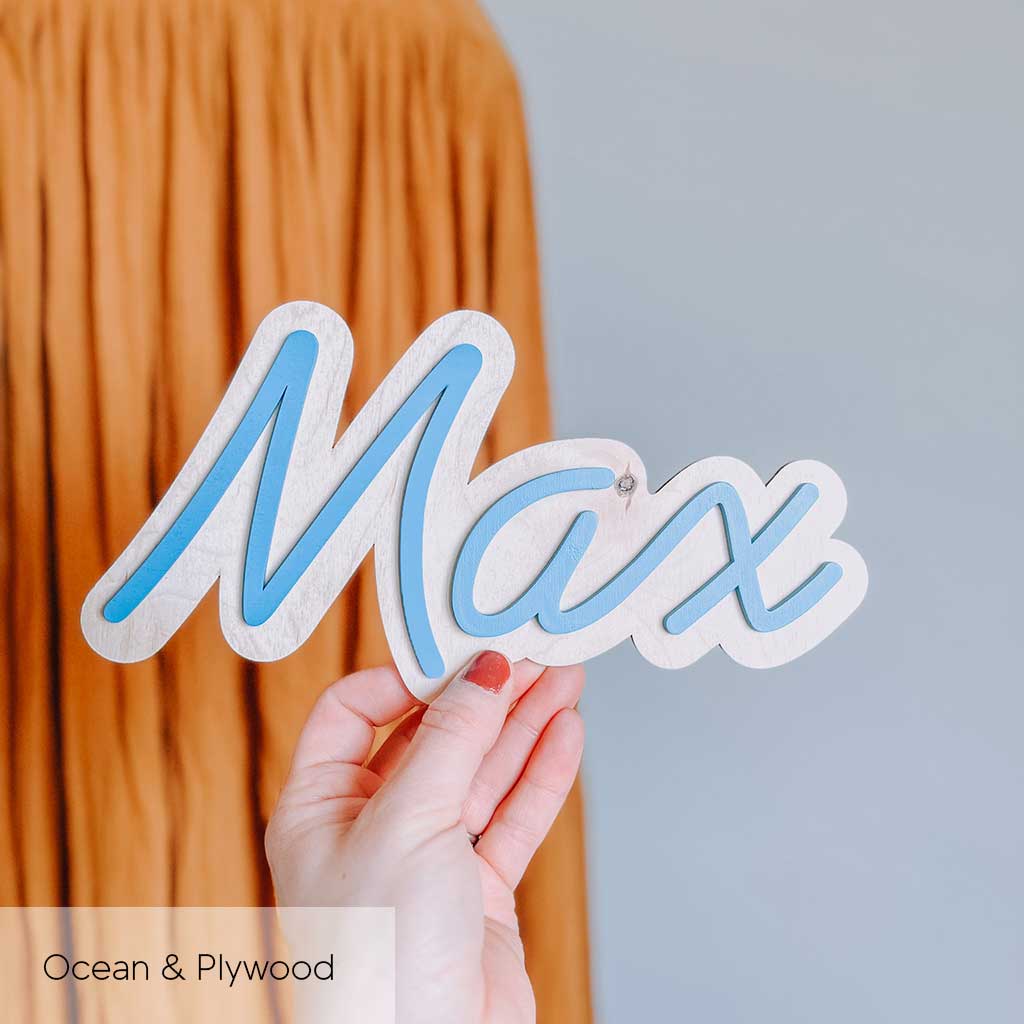 One of our most popular products, the custom wooden wall name, is now available to order in a striking layered design featuring an elegant cursive font.
