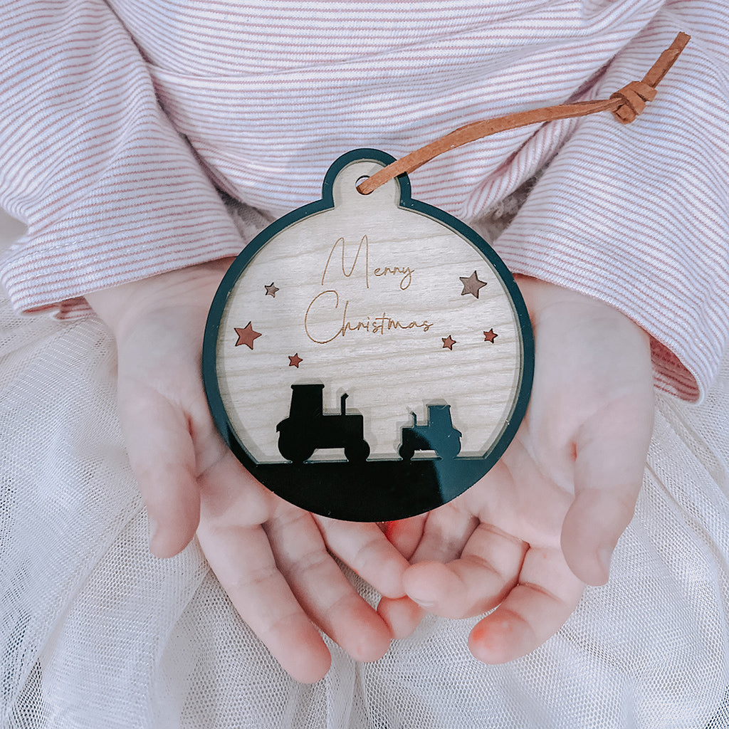 Merry Christmas Bauble | Tractor Christmas Gift | Christmas Ornament | Tractor Wooden Christmas Gift