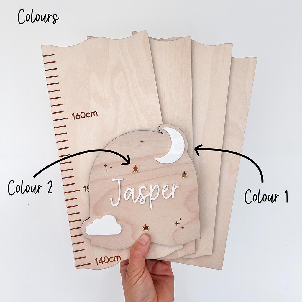 Grow Under the Moonlight – Moon Clouds Personalised Wooden Height Chart