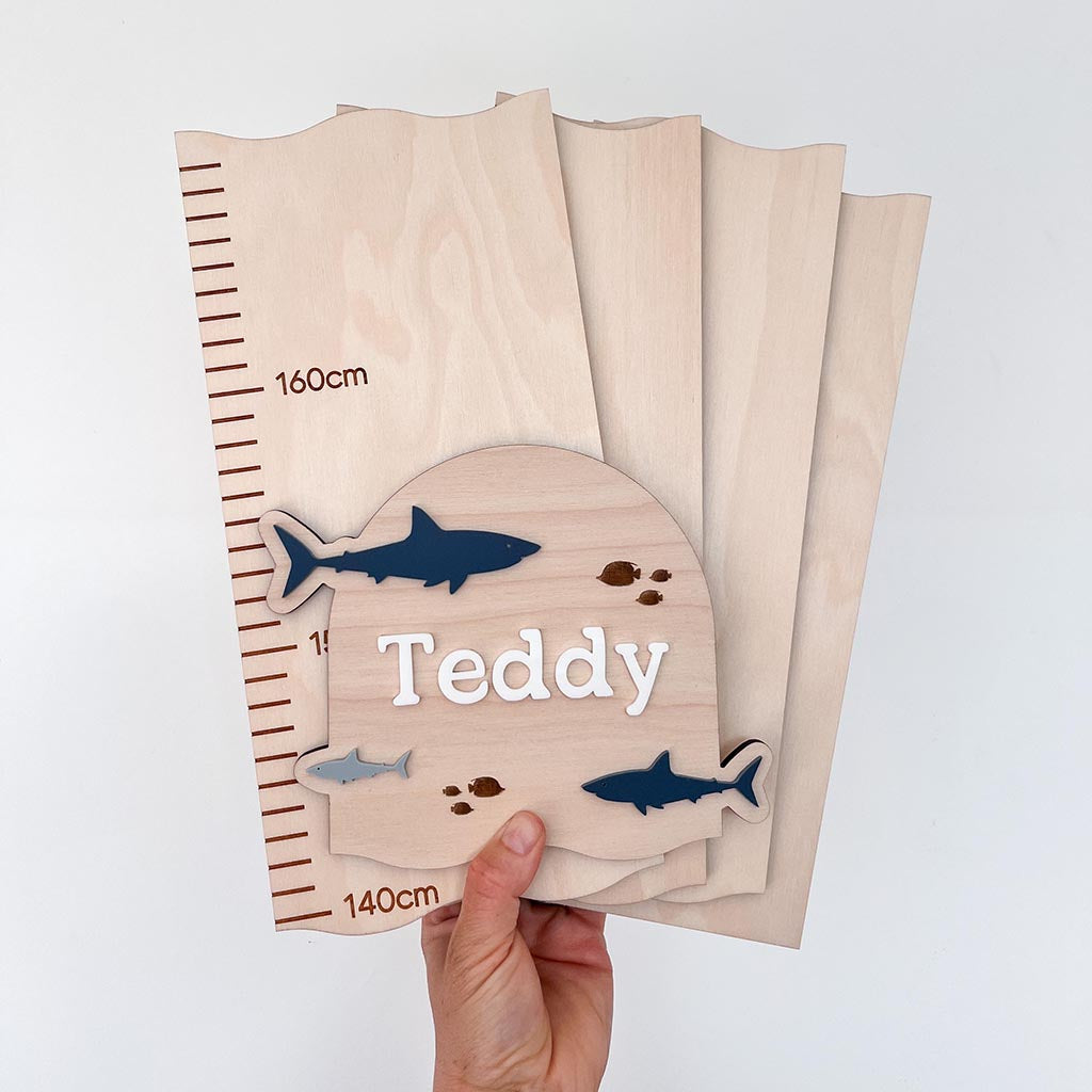 Make Waves as They Grow – Shark-Themed Personalised Wooden Height Chart