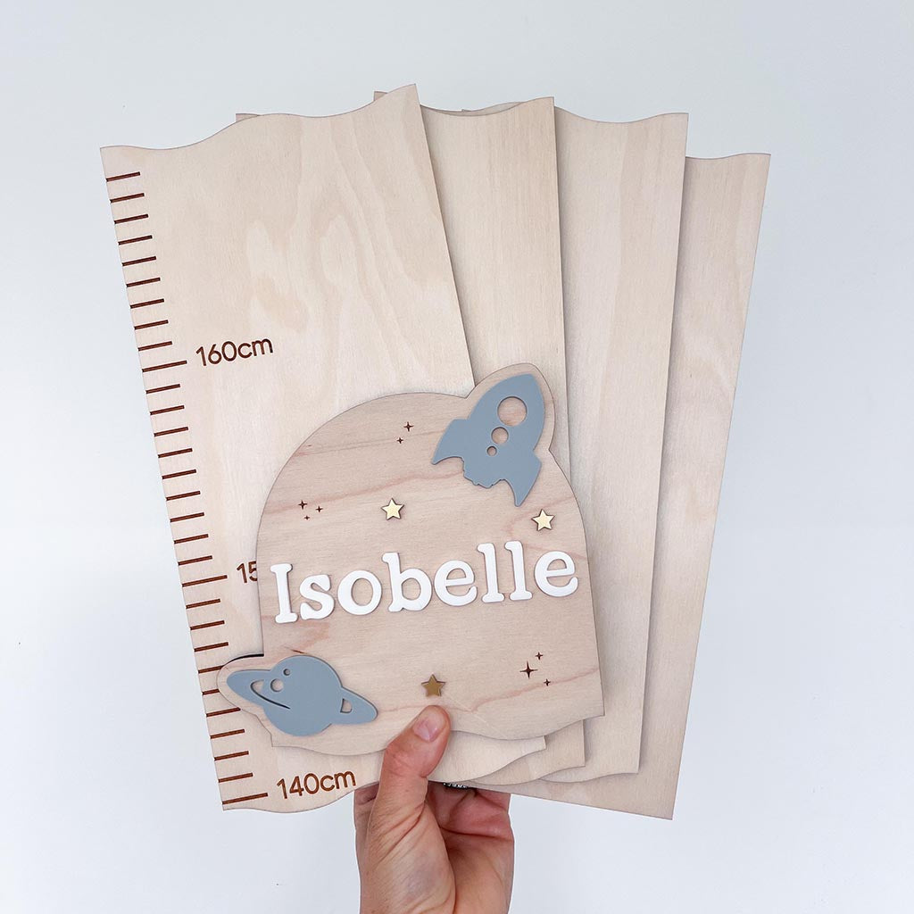 Celebrate every growth spurt with our beautifully crafted Space-Themed Personalised Height Chart – a practical keepsake that turns everyday measuring into an out-of-this-world adventure. Lovingly made and custom engraved with your child’s name, each chart features rockets, planets, and stars, adding a cosmic touch to their room decor. Perfect for little astronauts with big dreams!