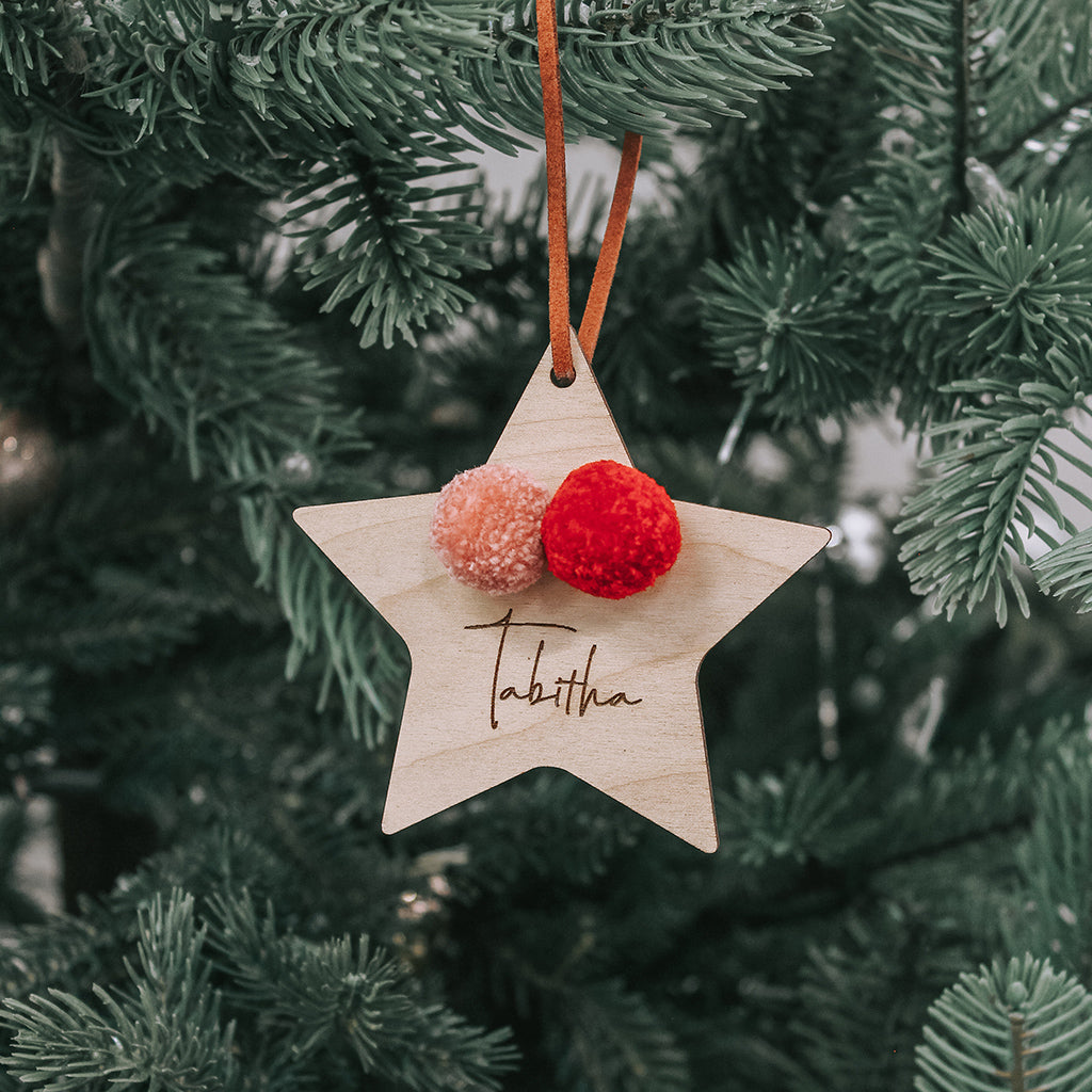 Personalised Christmas Pom Pom Bauble | First Christmas Gift | Custom Name Christmas Ornament | Wooden Christmas Gift