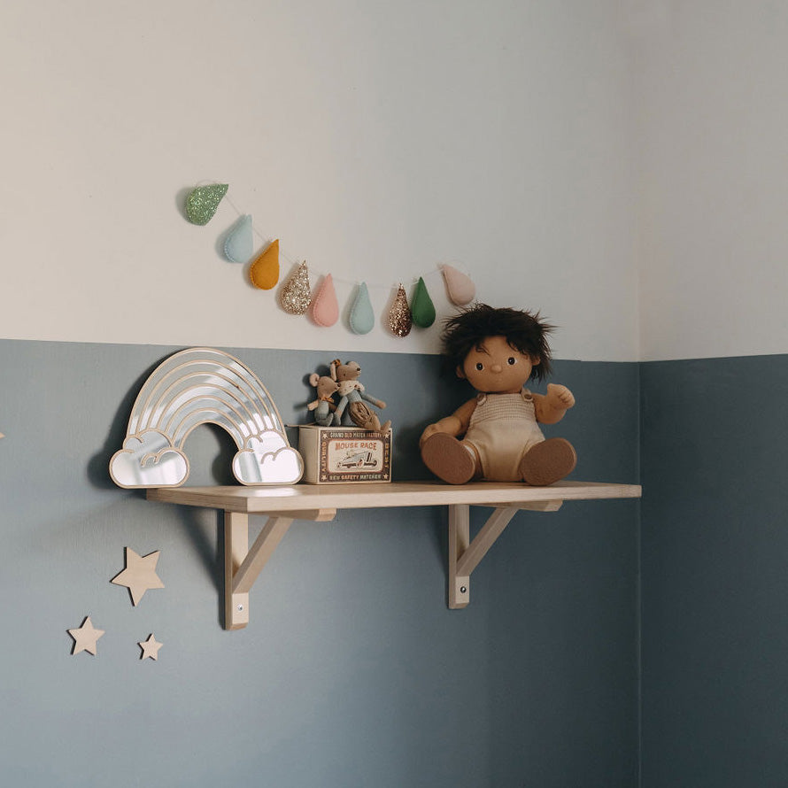 Add a burst of wonder to your child's day with a rainbow mirror! This fun mirror is perfect for boosting their mood and creating a cheerful atmosphere, it looks fab in any room, nursery, or even for tummy time! It's shatterproof and crafted from mirrored acrylic inset into a plywood frame