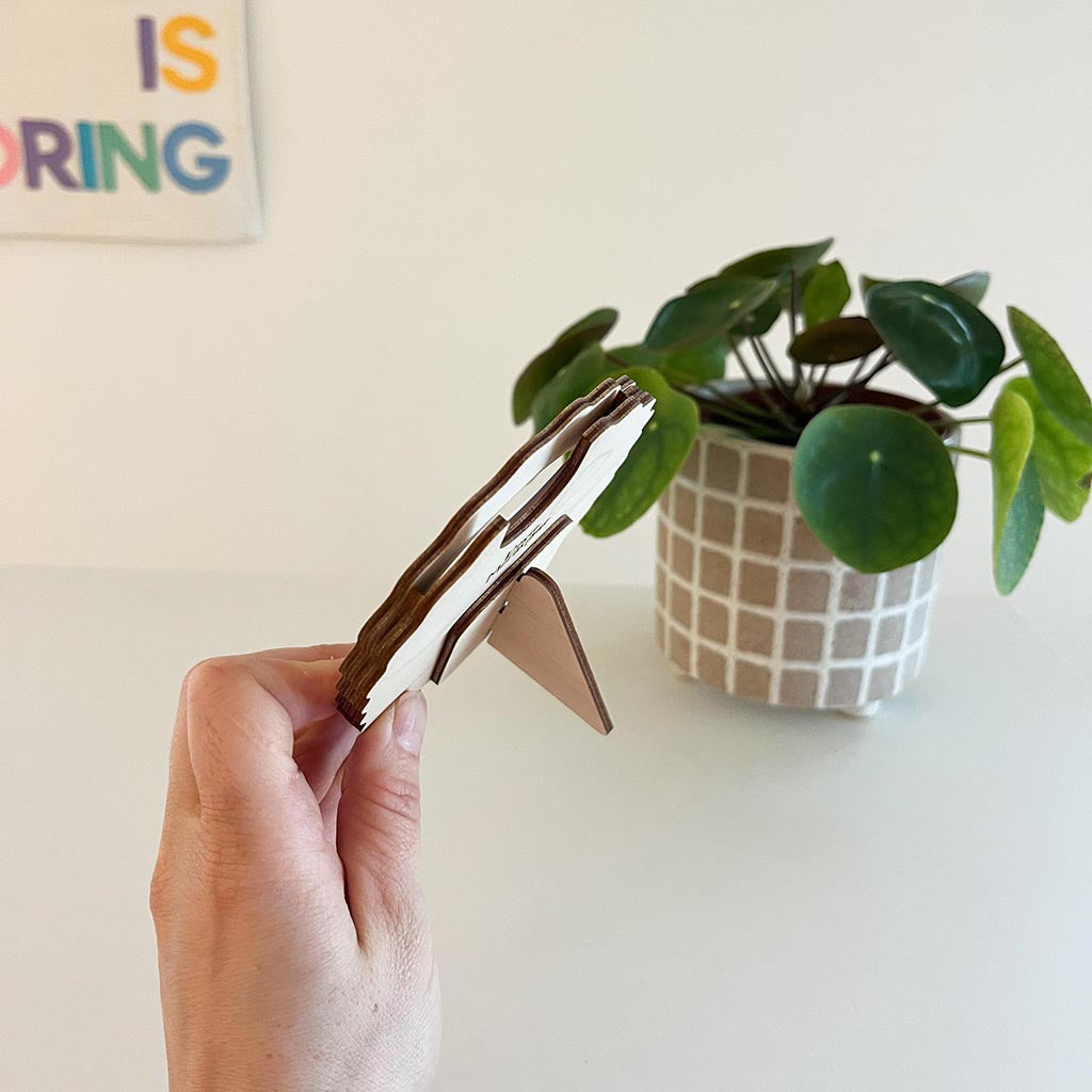 All our products are made from raw, unpainted, FSC-certified birch plywood, walnut veneer, oak veneer, birch veneer or acrylic. Every wooden item is beautifully sanded sides to ensure no burn marks are left on the surface. Please note the wood grain may vary from that shown in the pictures.