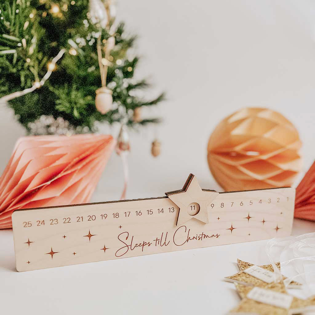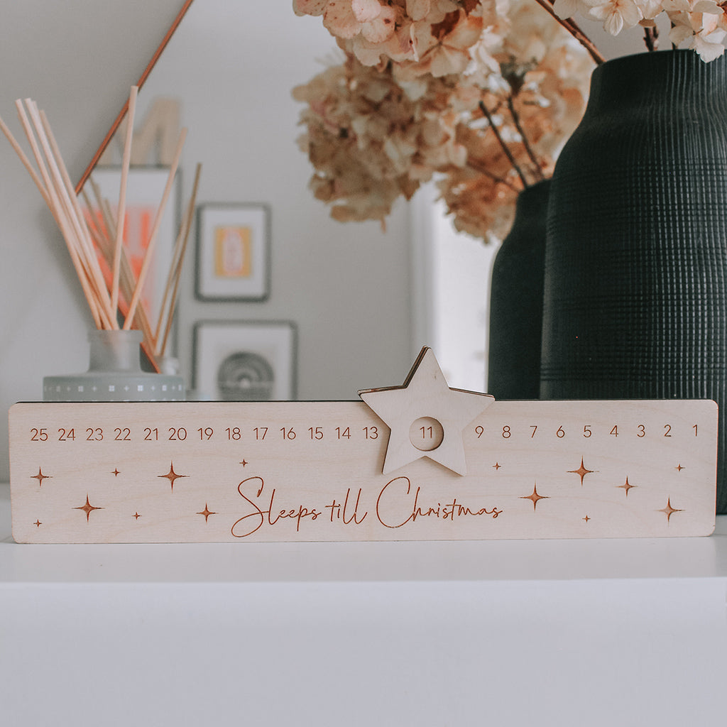 Christmas Countdown | Bespoke Wooden Countdowns | Gold Star Countdown to Christmas | Wooden Advent Calendar