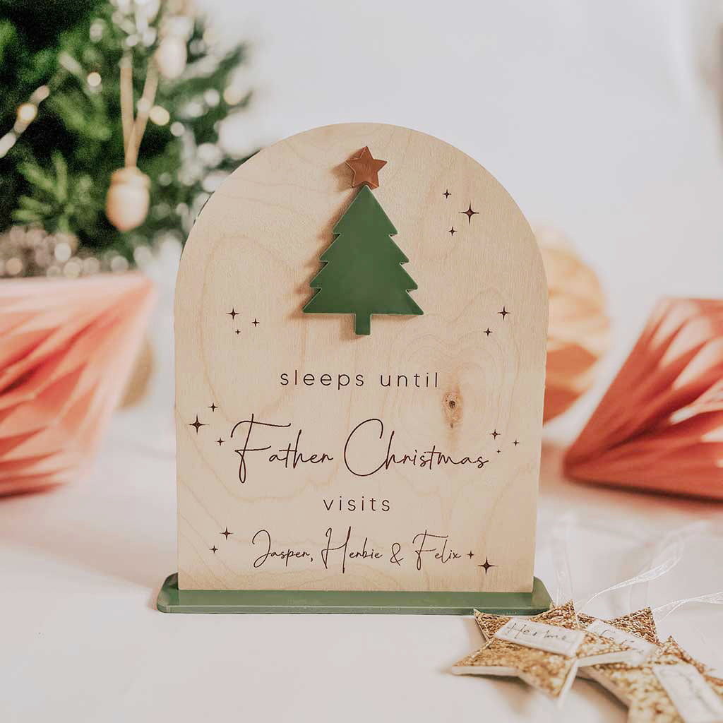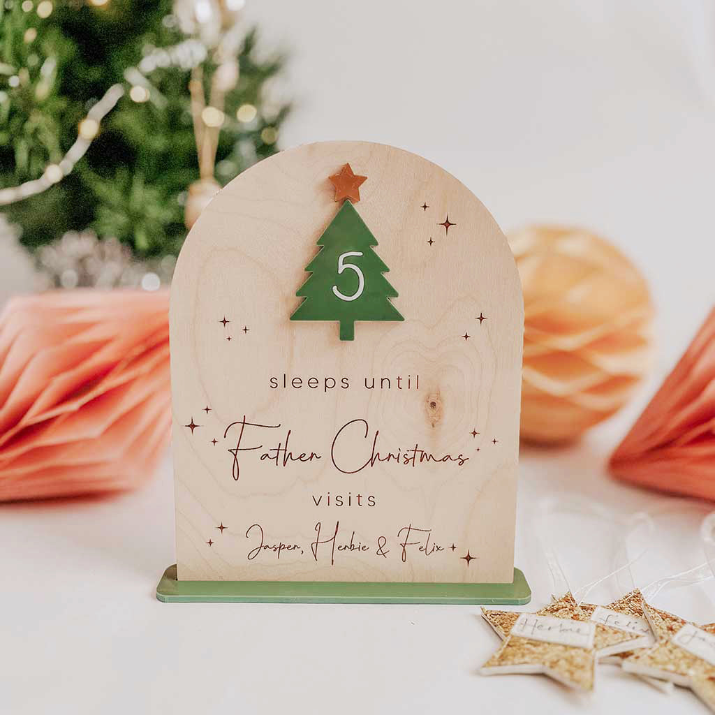 Personalised Christmas Tree Countdown | Sleeps Until Santa Visits | Days Until Father Christmas Visits | Keepsake Advent Countdown