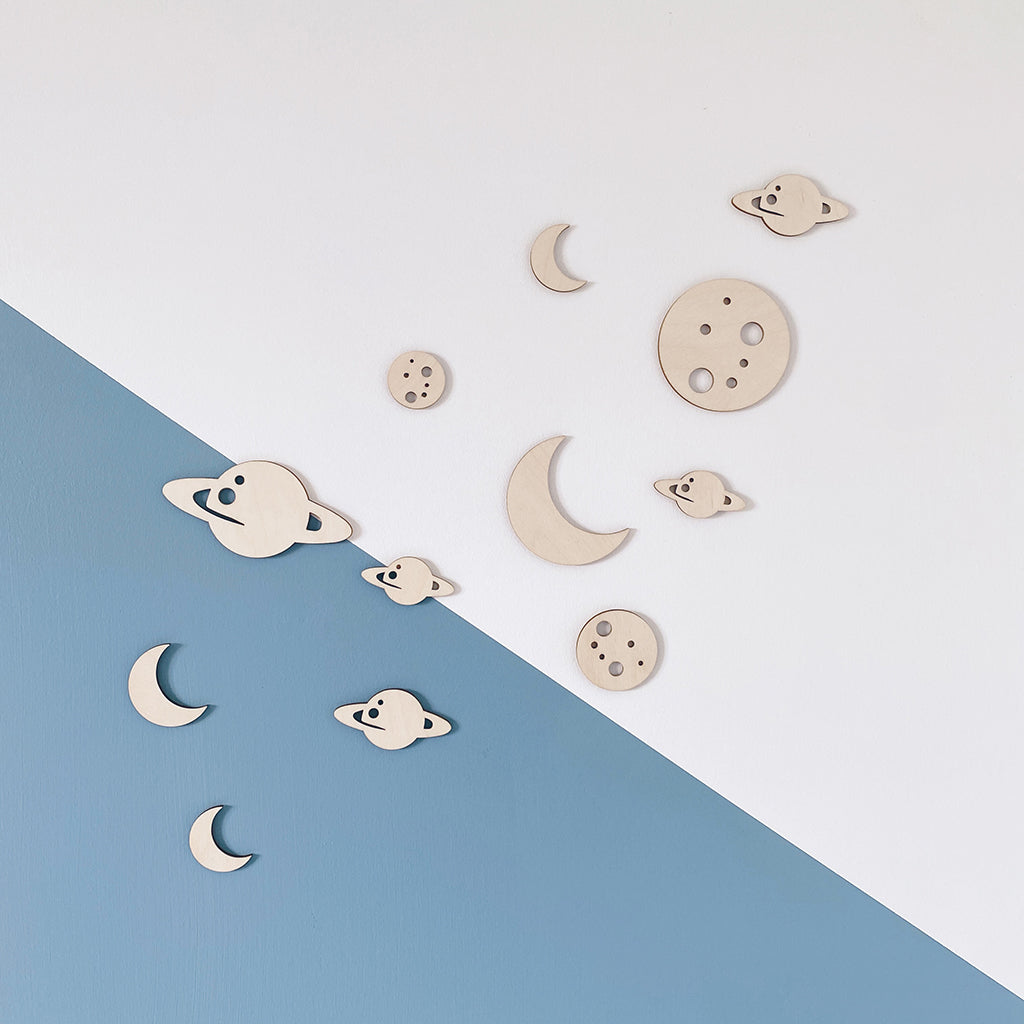 Space Wall Decor | Bedroom Wall Art | Nursery Room Wooden Space | Wooden Shapes for Wall