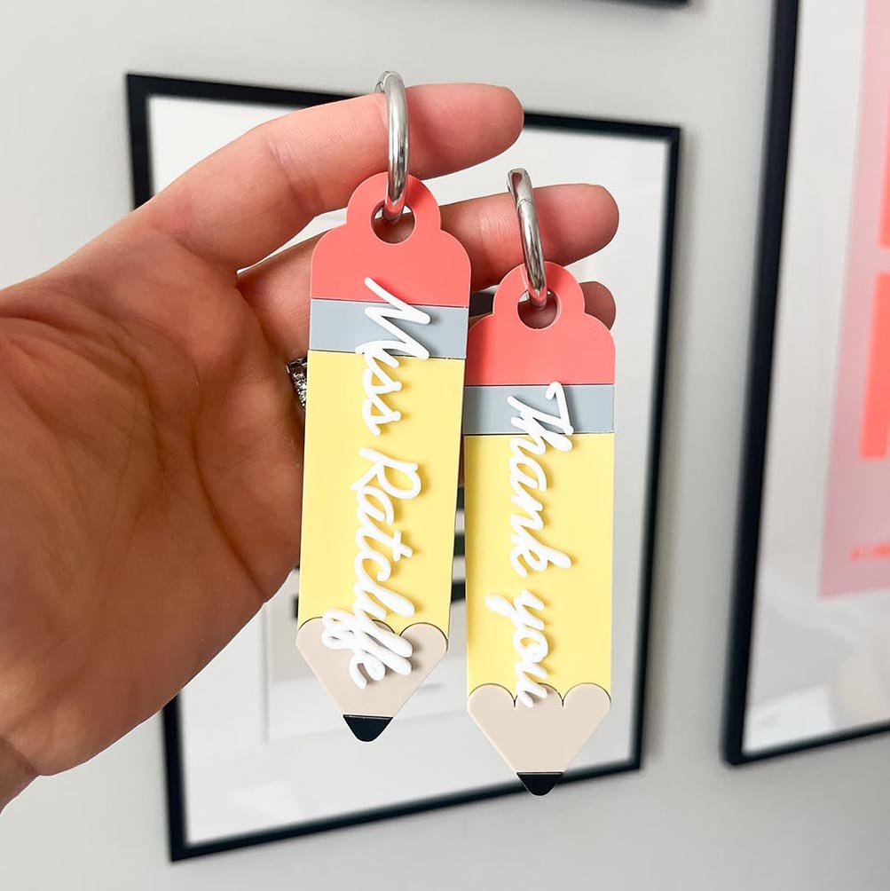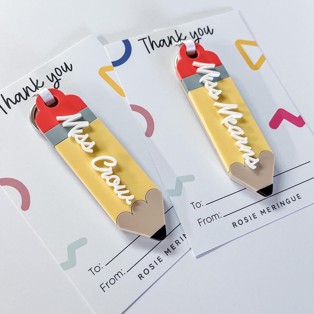 Personalised Teacher Gift | Pencil Name Keyring | End of Term Gift | Thank you Teacher