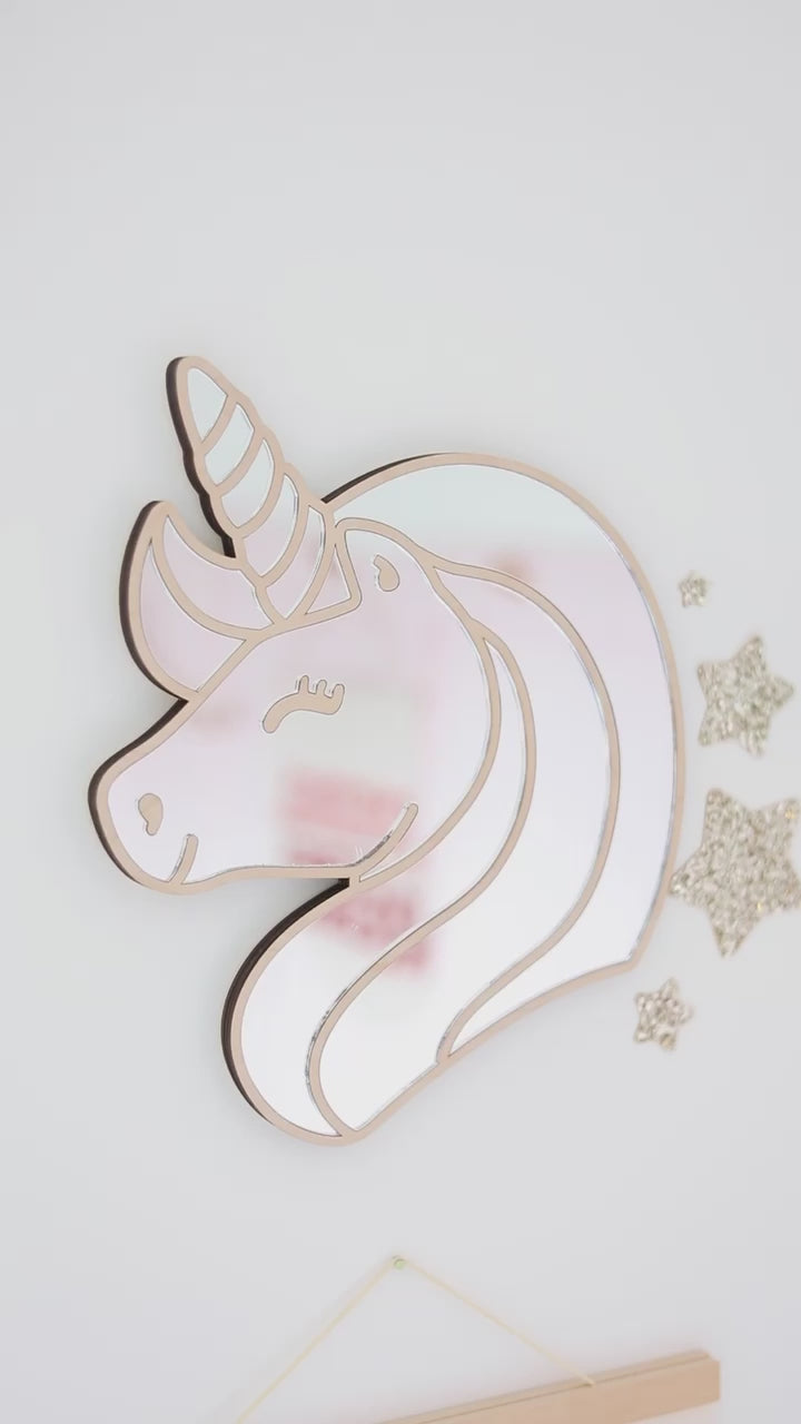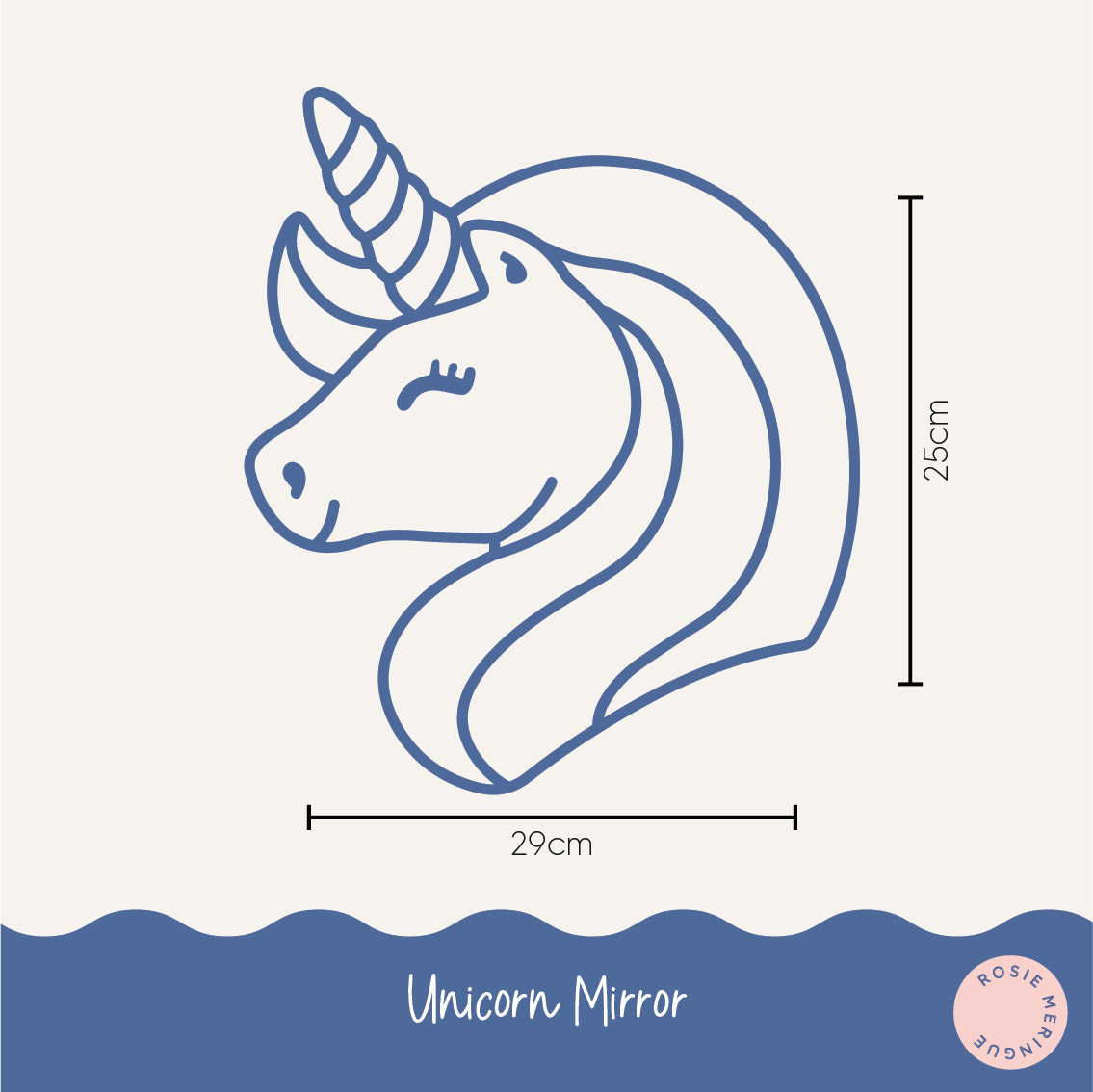 Sparkle & delight with a unicorn mirror! Watch your child's dreams come alive as they admire their reflection surrounded by a magical unicorn, looks fab in any room, nursery, or even for tummy time! It's shatterproof and crafted from mirrored acrylic inset into a plywood frame.